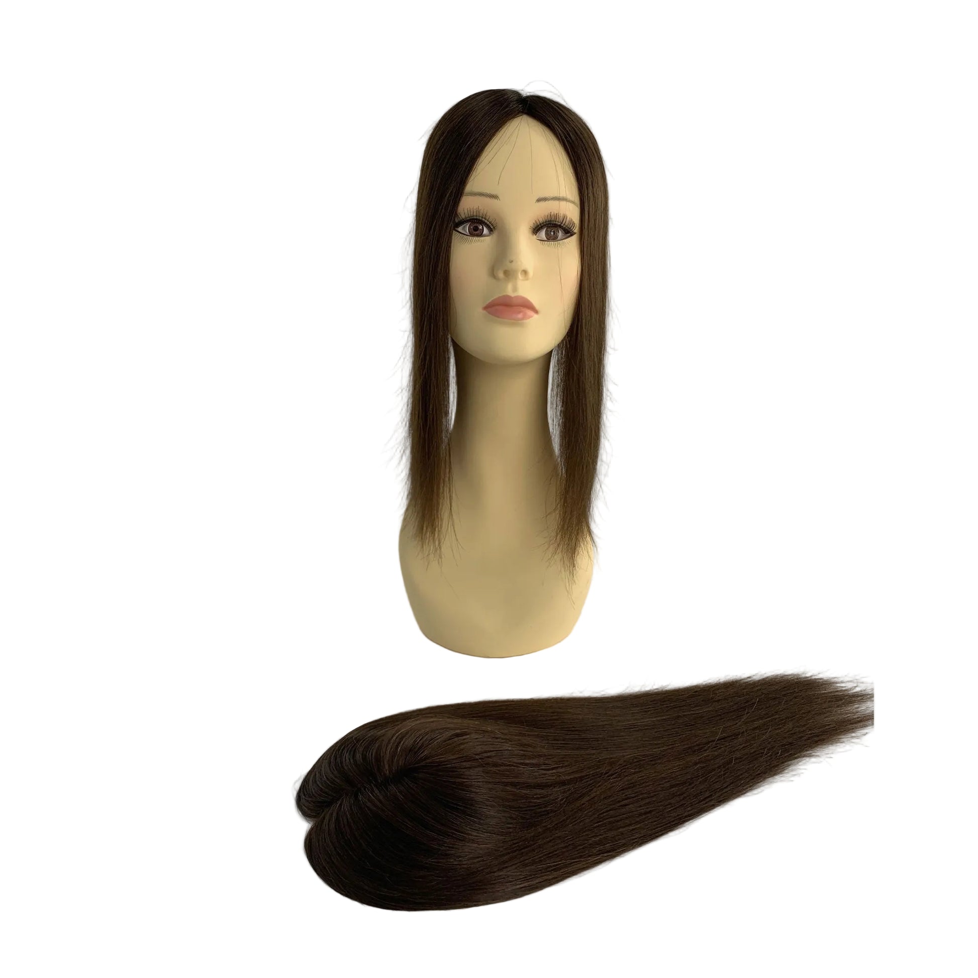 Our 5"x5" Mono Topper is designed for women seeking natural-looking volume and effortless coverage at the crown.
